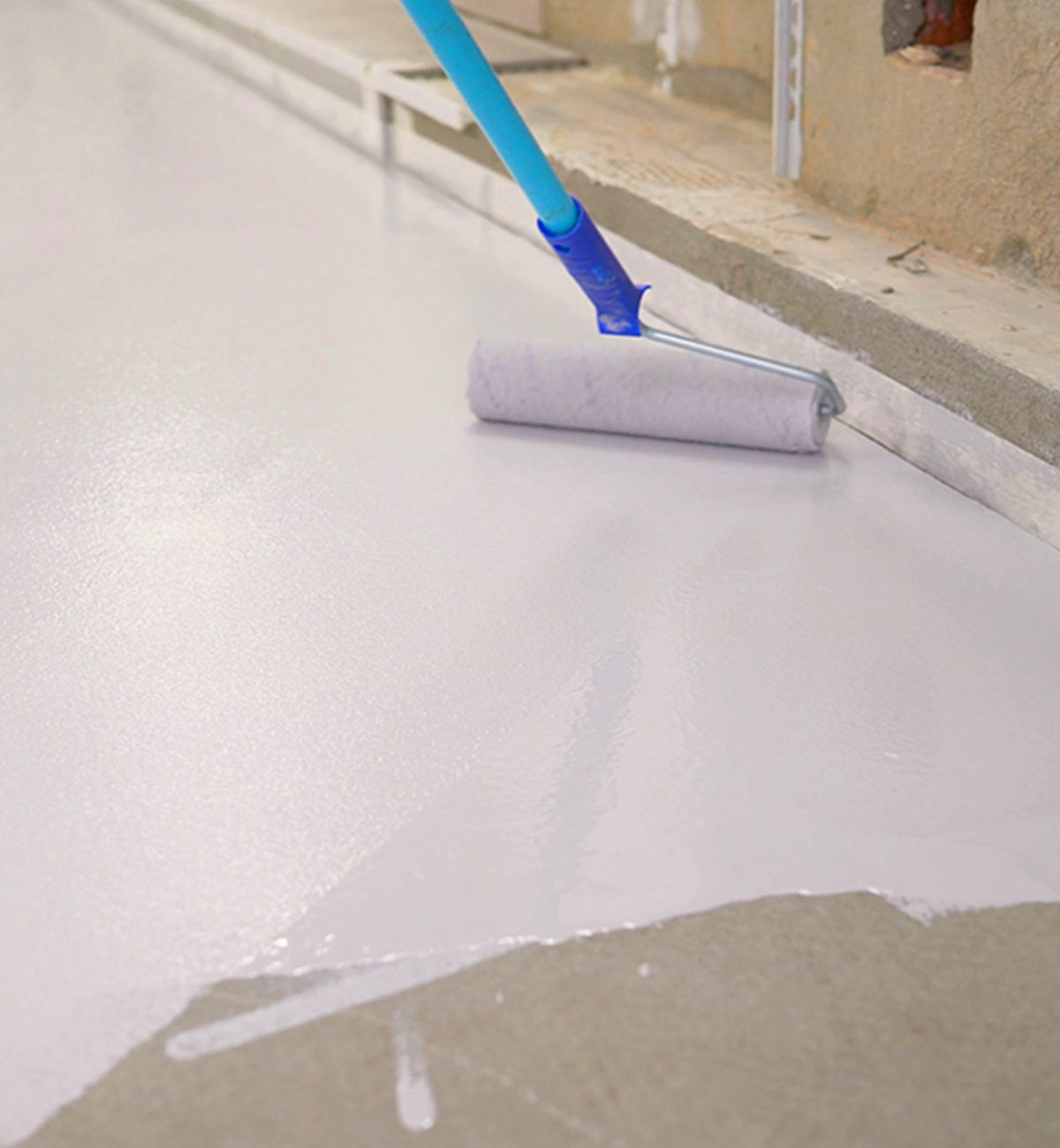 B471 wird mit einer nicht flusenden und kurzfloorigen Farbrolle aufgetragen. Schütten Sie das Material nicht auf den Boden aus, sondern rollen Sie aus dem Eimer heraus. Wir empfehlen mindestens einen zweischichtigen Versiegelungsvorgang. Die Verarbeitungszeit beträgt ca. 30 Minuten (bei 20°C) Bei Temperaturen ab 20°C sinkt die Topfzeit! Das Ende der Verarbeitungszeit kündigt sich deutlich durch einen Viskositätsanstieg an. Bei einer zweifachen Versiegelung kann auf