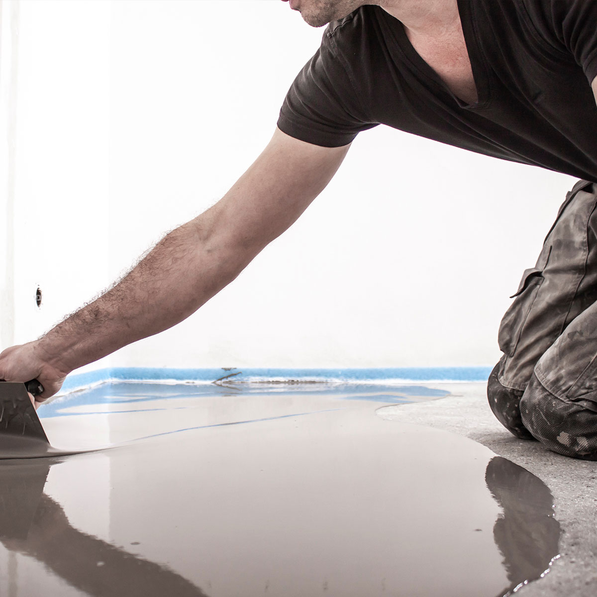 Der Boden muss trocken, fest, ölfrei, und rau sowie saugfähig sein! Sauberkeit ist sehr wichtig!Ölige Stellen müssen unbedingt vorher gereinigt werden. Ist es ein neuer Boden, muss er vollständig ausgetrocknet sein. (Restfeuchte unter 3%) Eine 2K Altbeschichtung muss nicht entfernt, aber aufgeraut werden. Lose Teile, sowie abplatzende alte Farbreste, sind zu entfernen.