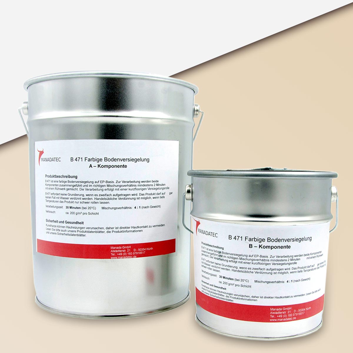 • 2K Epoxidharz Bodenbeschichtung Manadur B 471 in RAL 1015 Hell-elfenbein. Farbige 2-Komponenten Epoxidharz Bodenbeschichtung Roll-Bodenbeschichtung (zum Aufrollen).