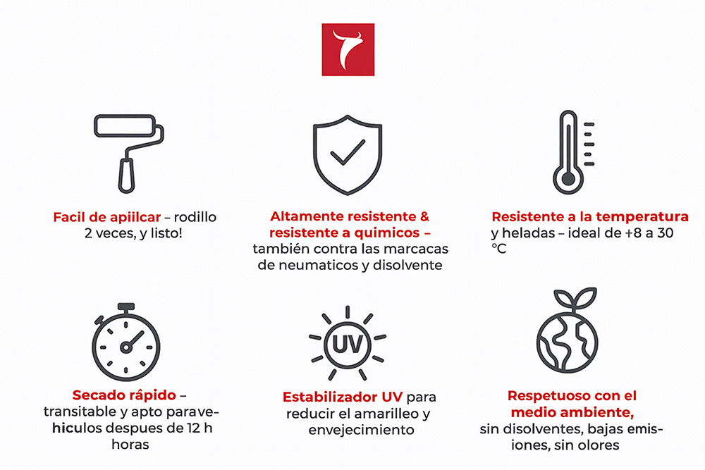 La solución ideal para garajes (sellado de garajes), sótanos, suelos de piedra decorativa, talleres, almacenes, naves industriales y suelos de diseño.