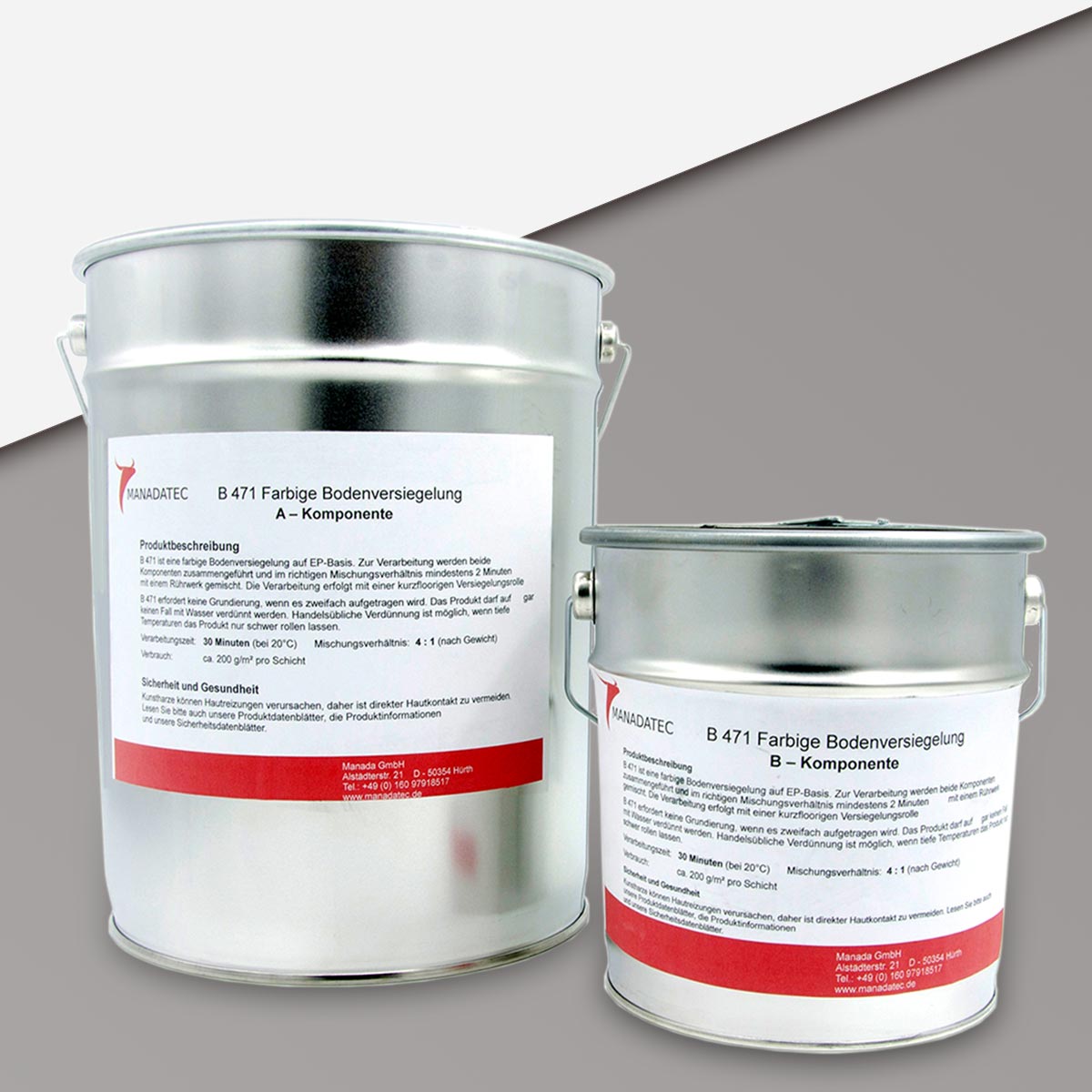 • 2K Epoxidharz Bodenbeschichtung Manadur B 471 in RAL 7036 Platingrau. Farbige 2-Komponenten Epoxidharz Bodenbeschichtung Roll-Bodenbeschichtung (zum Aufrollen).