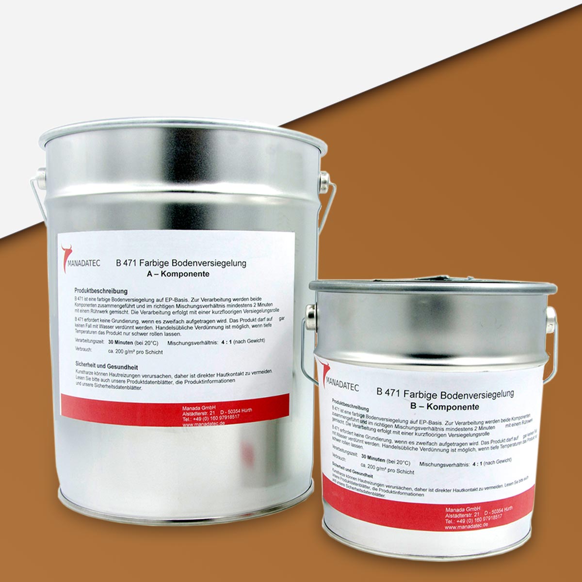 • 2K Epoxidharz Bodenbeschichtung Manadur B 471 in RAL 8001 Ockerbraun. Farbige 2-Komponenten Epoxidharz Bodenbeschichtung Roll-Bodenbeschichtung (zum Aufrollen).