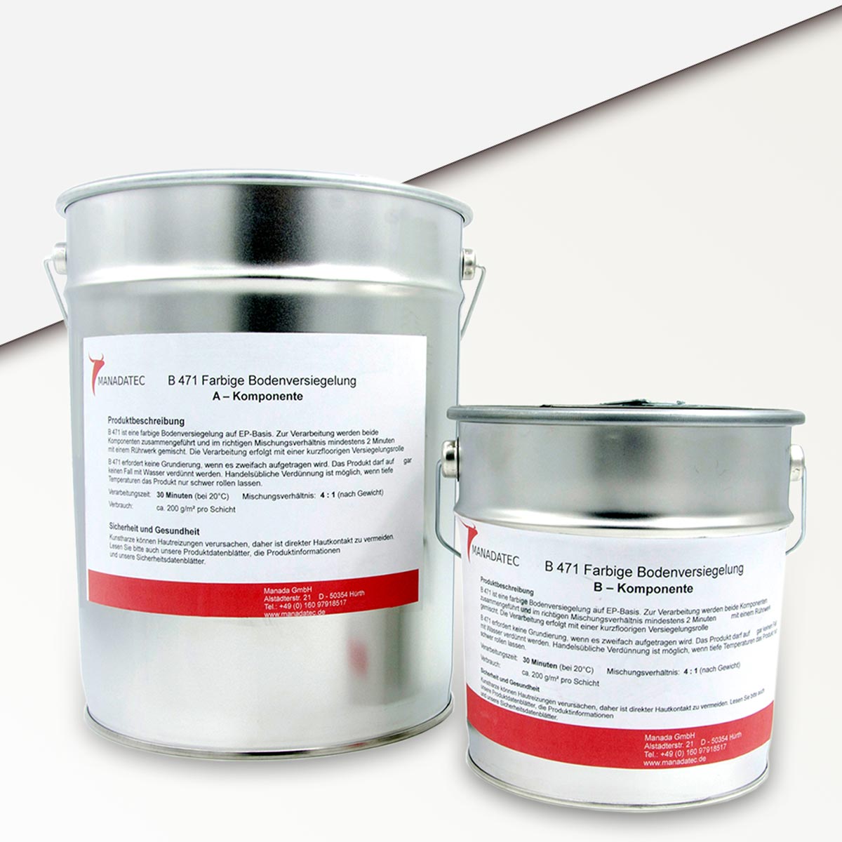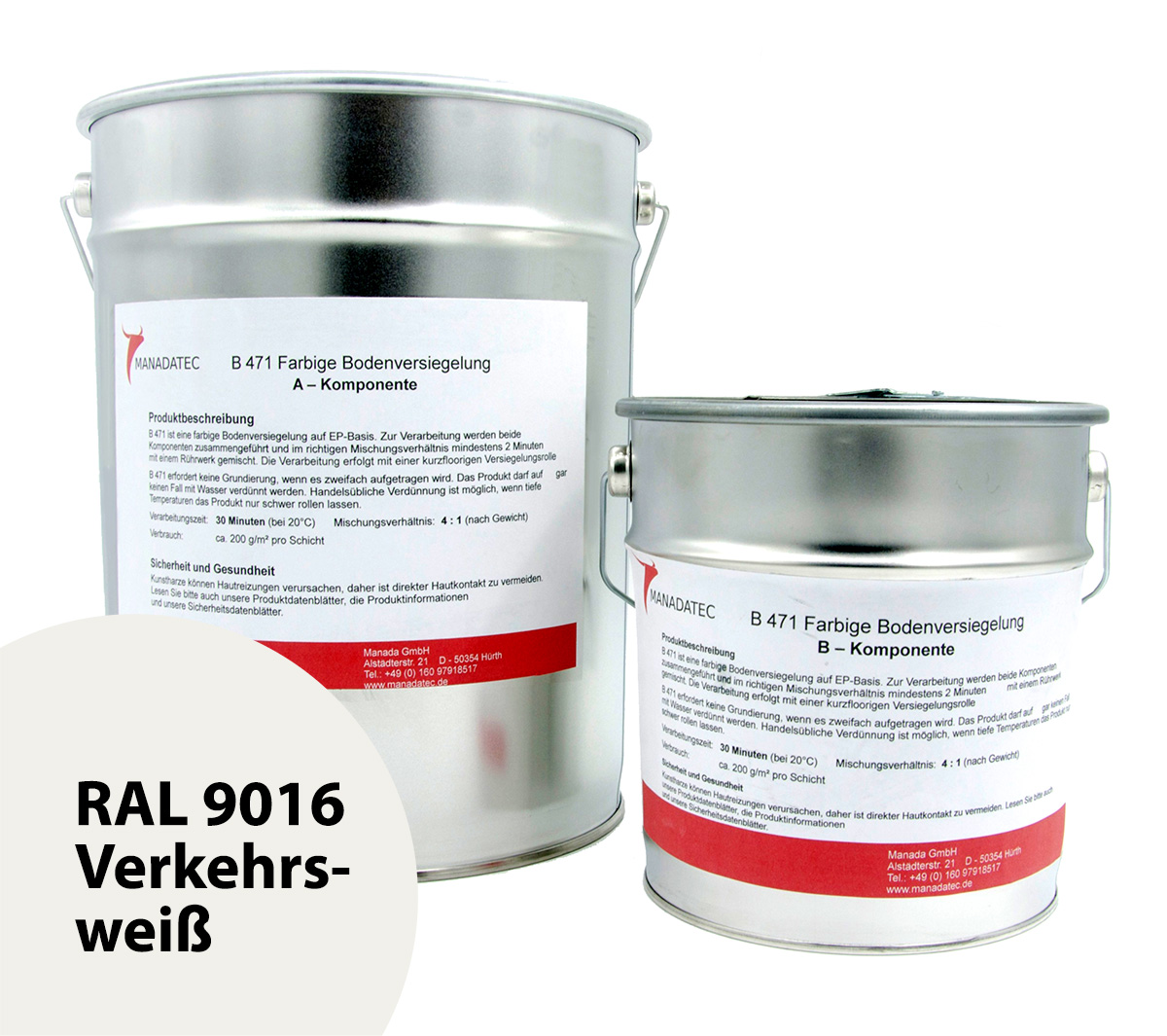 • 2K Epoxidharz Bodenbeschichtung Manadur B 471 in RAL 9016 Verkehrsweiß. Farbige 2-Komponenten Epoxidharz Bodenbeschichtung Roll-Bodenbeschichtung (zum Aufrollen).